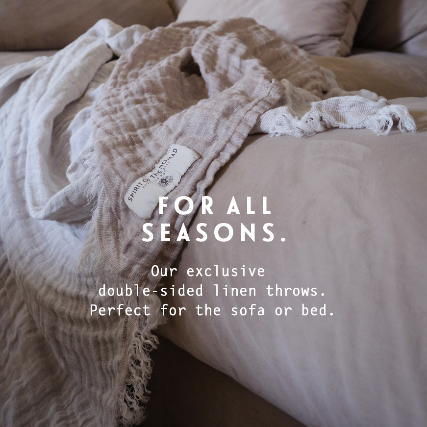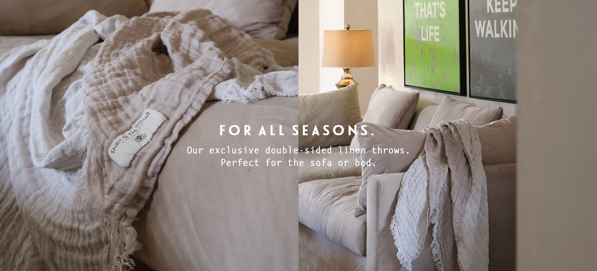 ett härligt bad. Hos Spirit of the Nomad hittar du exklusiva, stilrena och hållbara produkter som ger ditt sovrum och badrum en äkta lyxhotellkänsla - och dig själv en ljuvlig känsla av välmående i både kropp och själ. Hitta dina favoriter bland påslakan, örngott, handdukar, morgonrockar och mycket mer – produkter som du kan njuta av varje dag och aldrig vill vara utan. Tillverkade av de finaste materialen för överlägsen komfort, känsla och kvalitet, och de är självklart hållbart producerade.